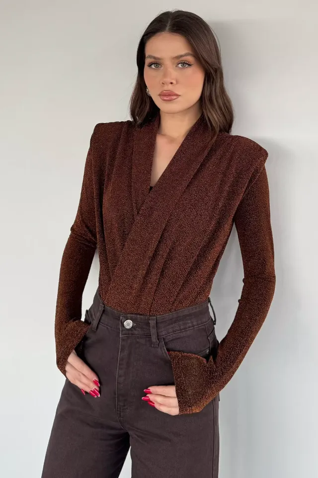 بودي نسائي سادة بأكمام طويلة وياقة دائرية كلاسيكية، مصنوعة من خامة ناعمة ومرنة تمنح الراحة ومظهراً أنيقاً، مثالي للارتداء اليومي أو للتنسيق مع قطع أخرى.