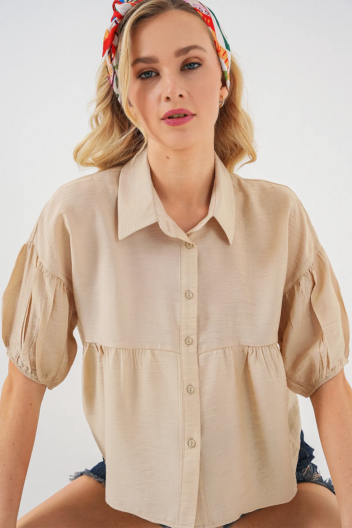 قميص نسائي أساسي بأكمام طويلة مع أزرار أمامية وتفاصيل درز دقيقة، مصنوع من قماش مريح وناعم، مناسب للإطلالات اليومية والكاجوال.