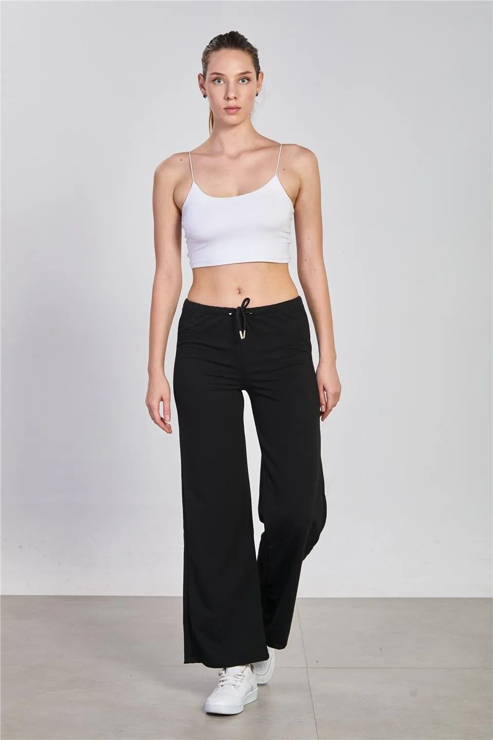 بنطلون نسائي واسع الساق بخصر مطاطي وجيوب عملية مع لمسة لامعة أنيقة. تصميمه العصري يمنح راحة وانسيابية، مناسب للإطلالات اليومية والعصرية بسهولة تنسيق.