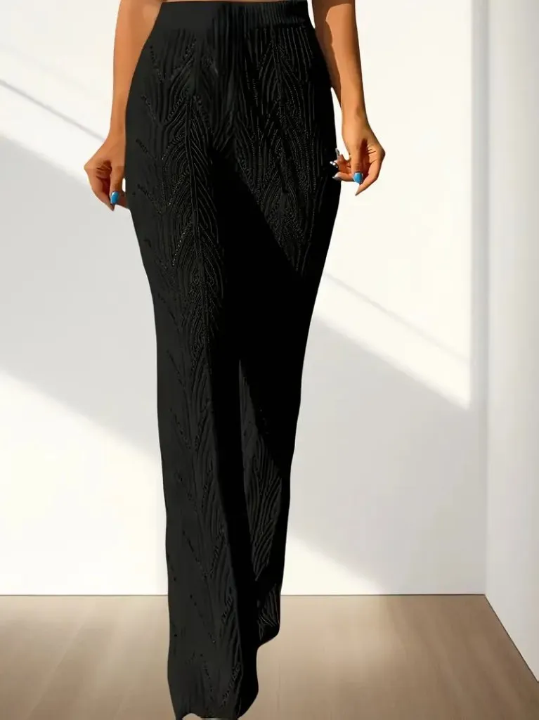 بنطلون لامع واسع الساق بخصر مطاطي للنساء - Beyond Store