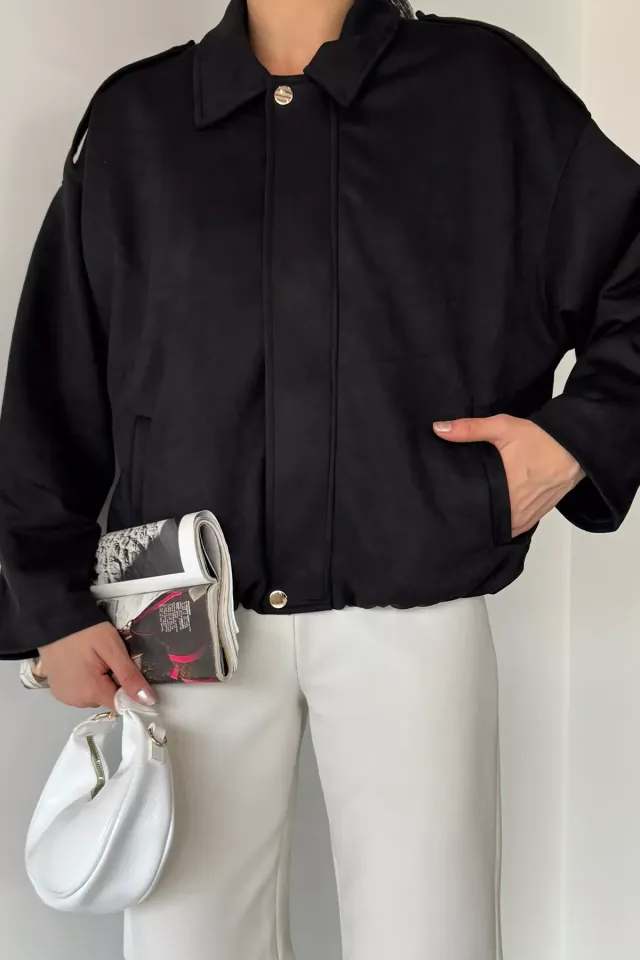 جاكيت نسائي واسع من جلد صناعي بياقة عالية وحافة قابلة للضبط لستايل شتوي دافئ وتريندي.