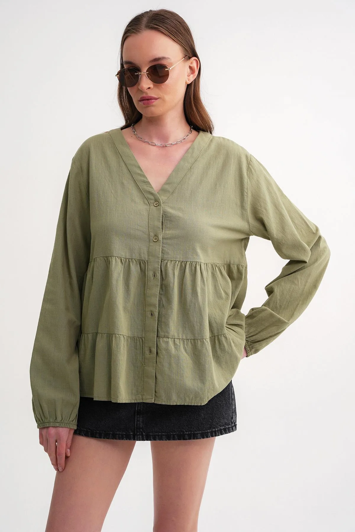 قميص نسائي مجعد مطرز بشكل قلوب - Beyond Store