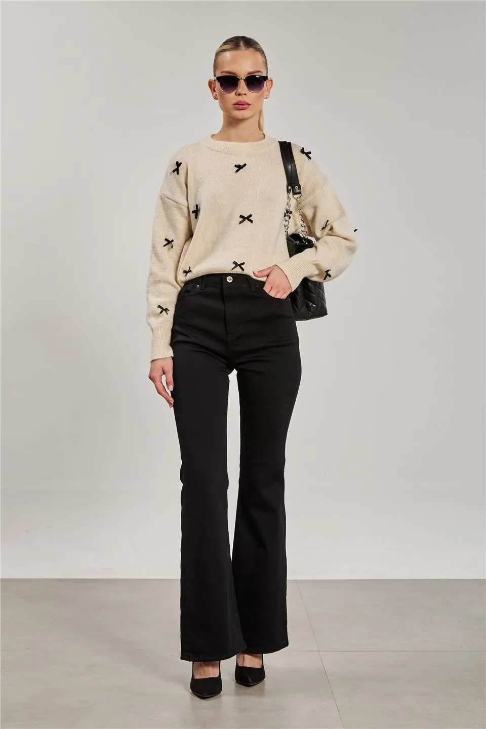 جينز بخصر مرتفع وقصة مستقيمة بحافة مقصوصة