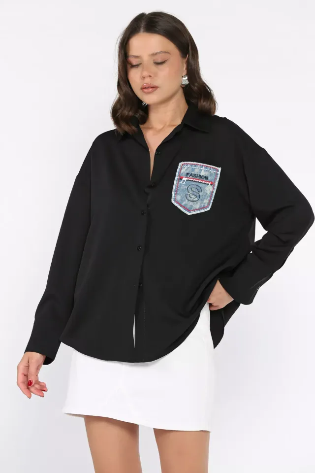قميص نسائي مجعد بأكمام قصيرة و جيب أمامي