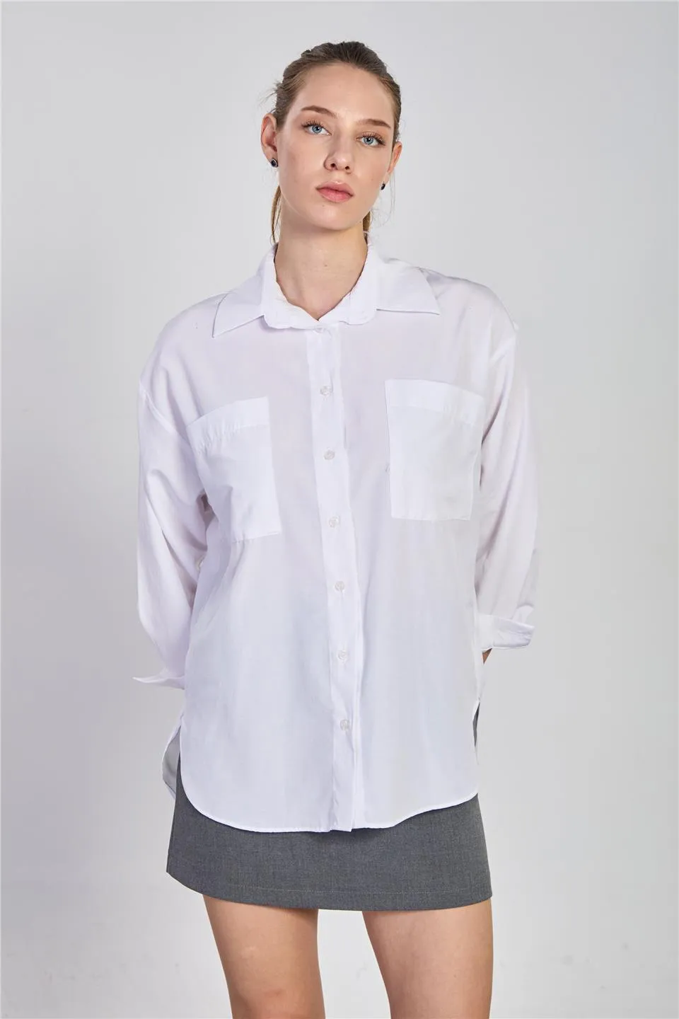 قميص نسائي مجعد بأكمام قصيرة و جيب أمامي - Beyond Store