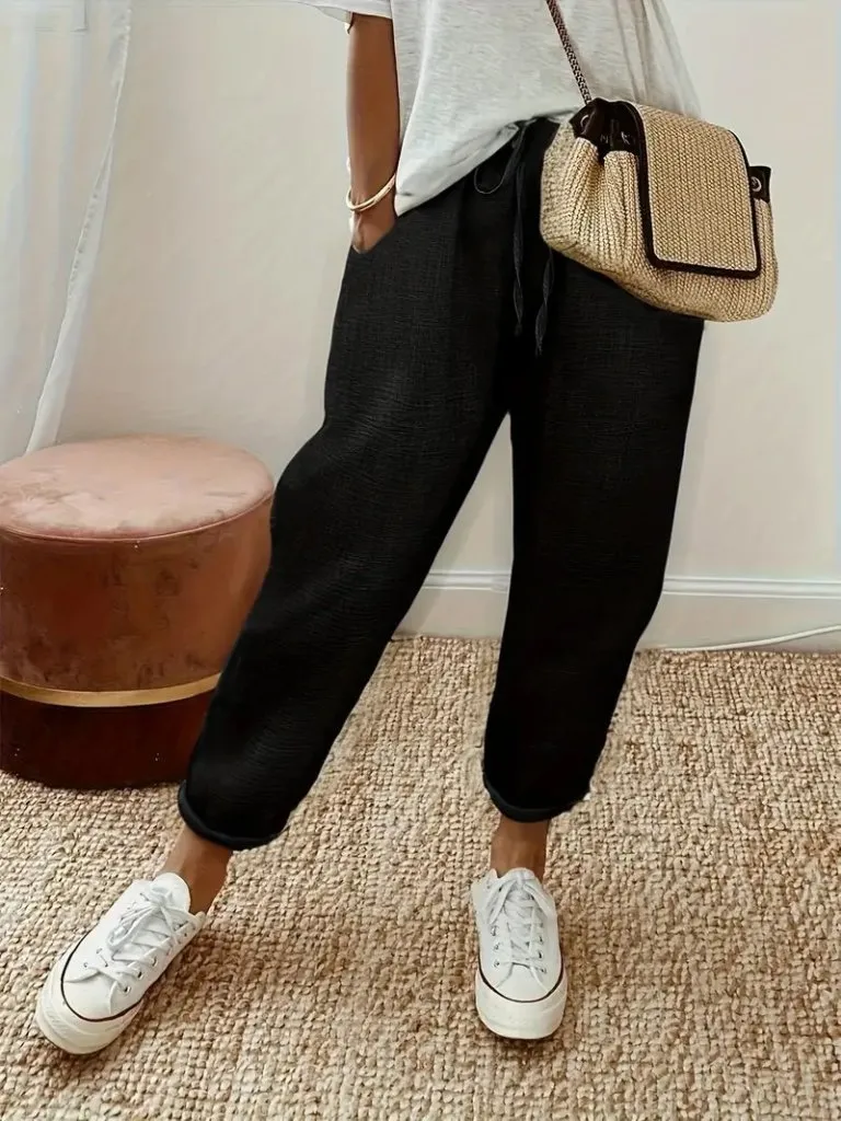 بنطلون نسائي واسع الساق بخصر مطاطي يوفر راحة مثالية طوال اليوم، مع جيبين مزدوجين عمليين لإضافة لمسة وظيفية. تصميم الساق الواسعة مع أطراف ممزقة يضفي لمسة عصرية وكاجوال، مناسب للإطلالات اليومية والمريحة.