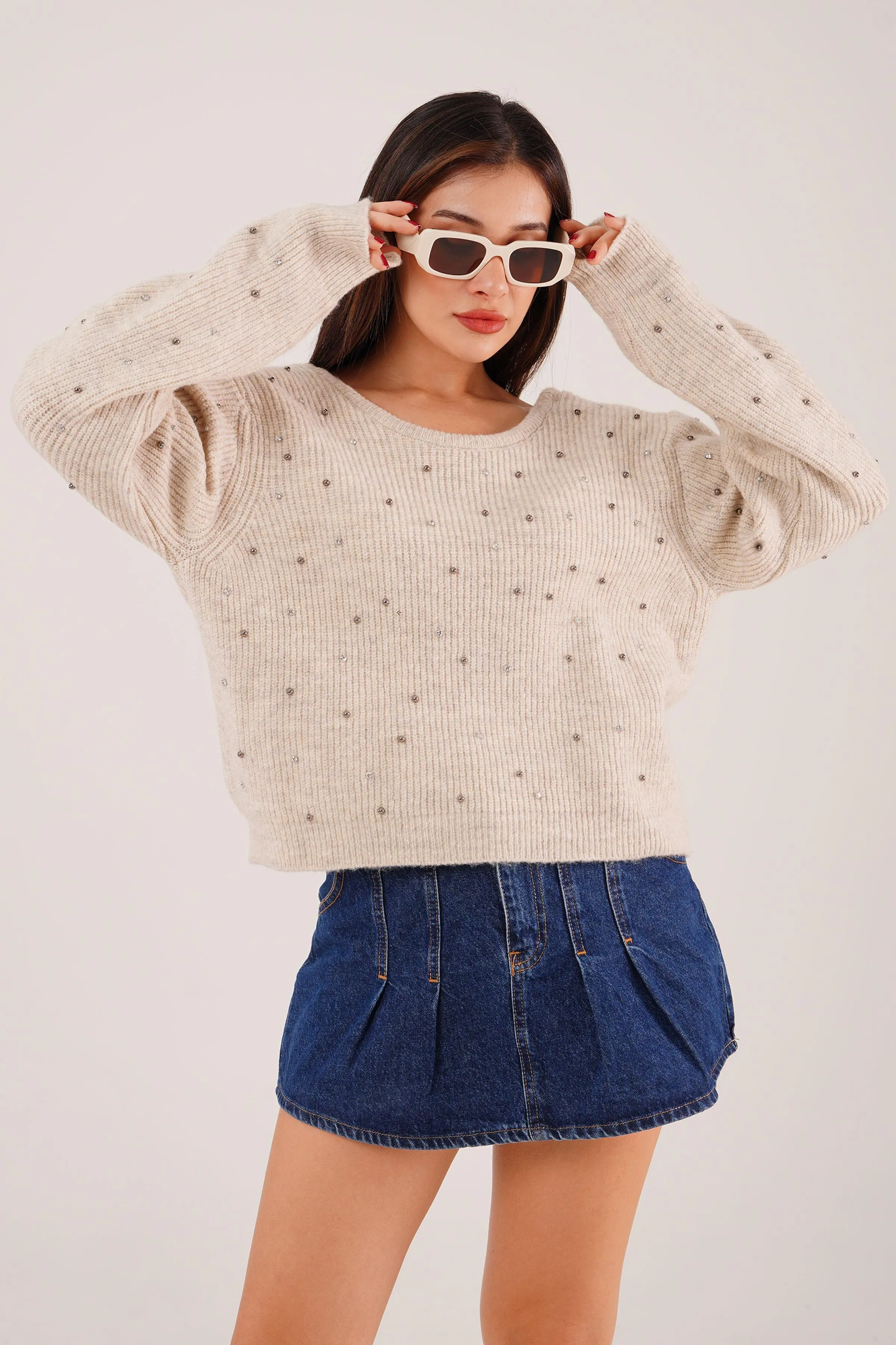 كنزة تريكو خفيفة مخططة بياقة دائرية وقصة مريحة لستايل يومي عصري وسهل التنسيق.