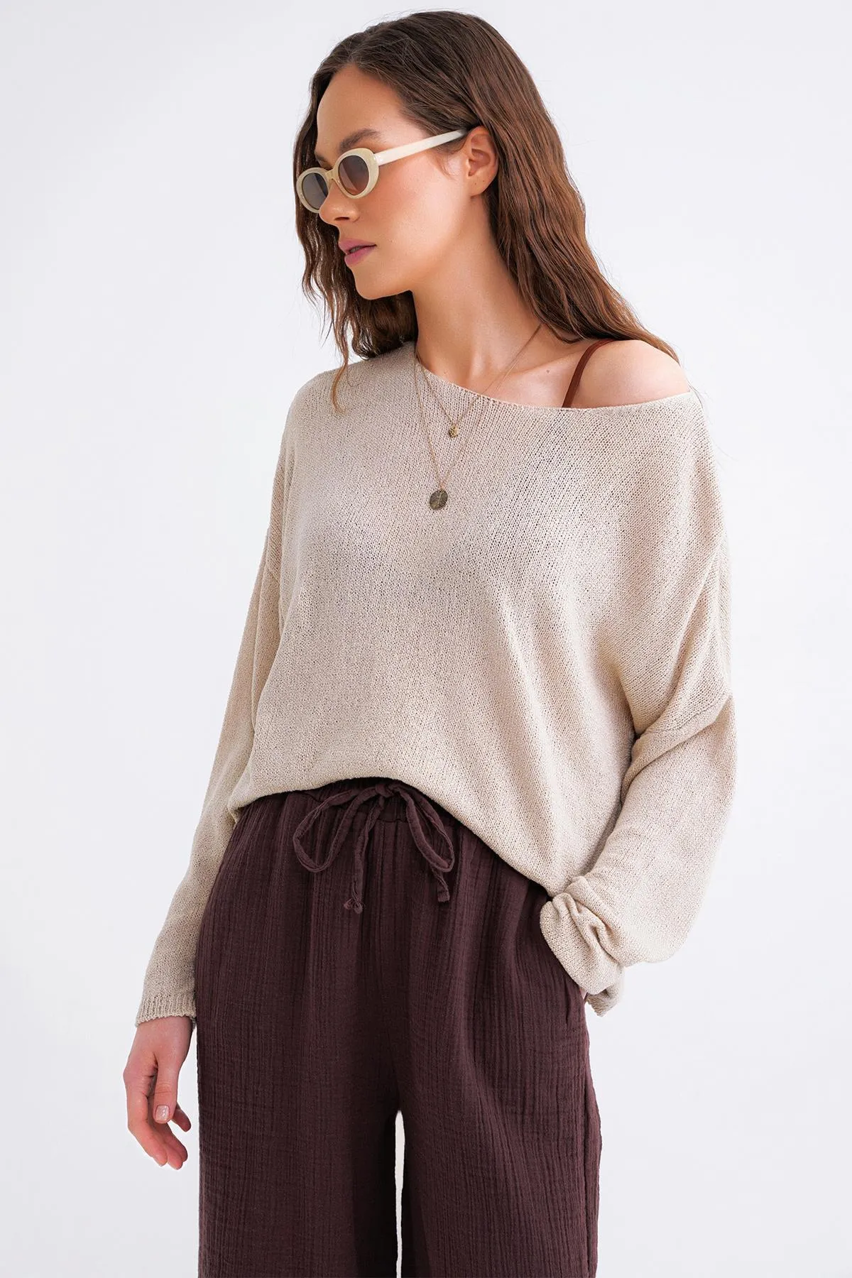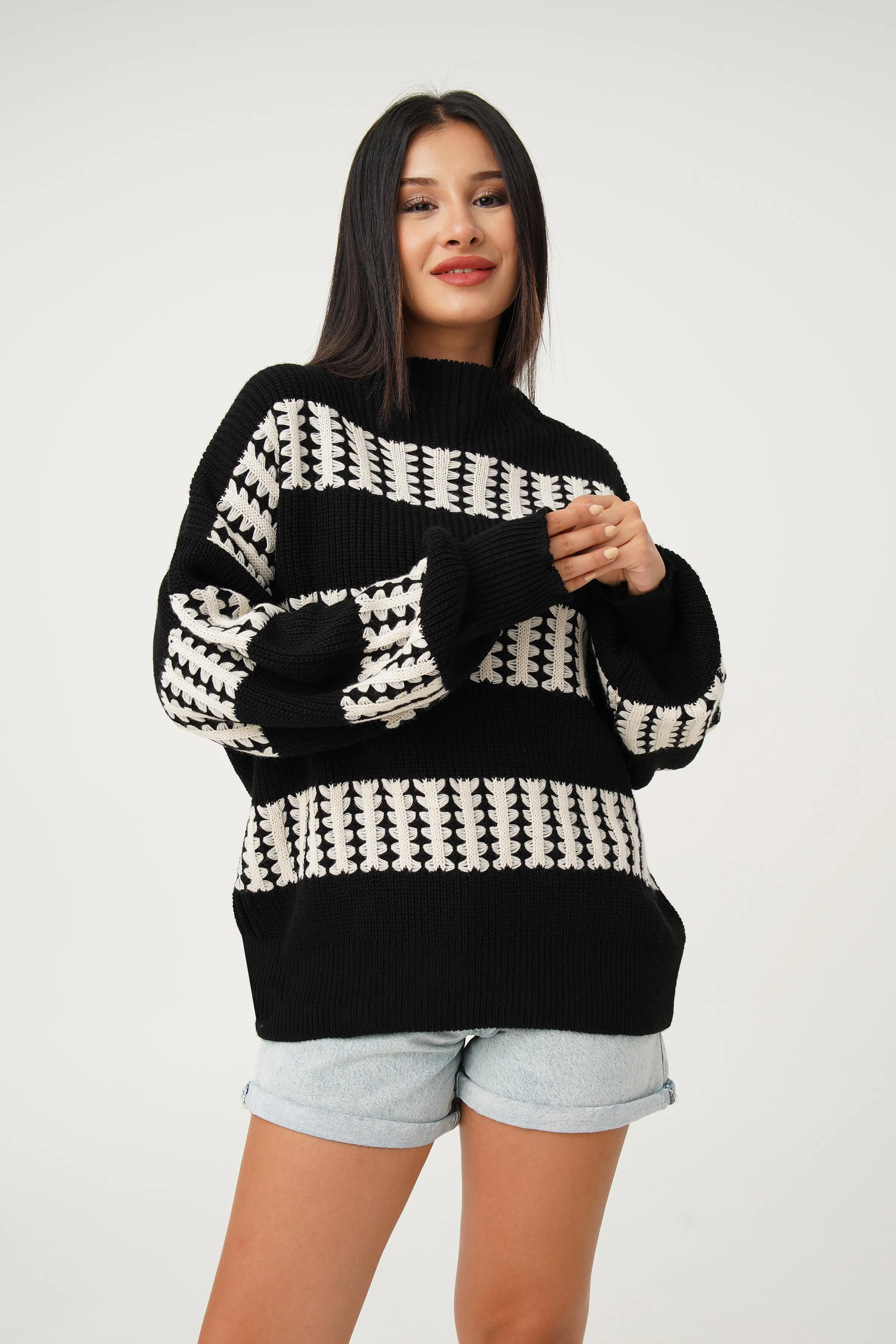 كنزة تريكو مخططة بياقة دائرية - Beyond Store