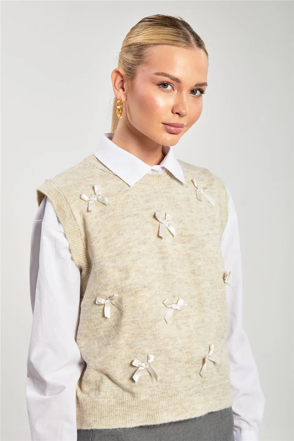 الموديل ترتدي مقاس ستاندرد – الطول 175 سم، الوزن 54 كغ، الصدر 88 سم، الخصر 65 سم، الورك 98 سم