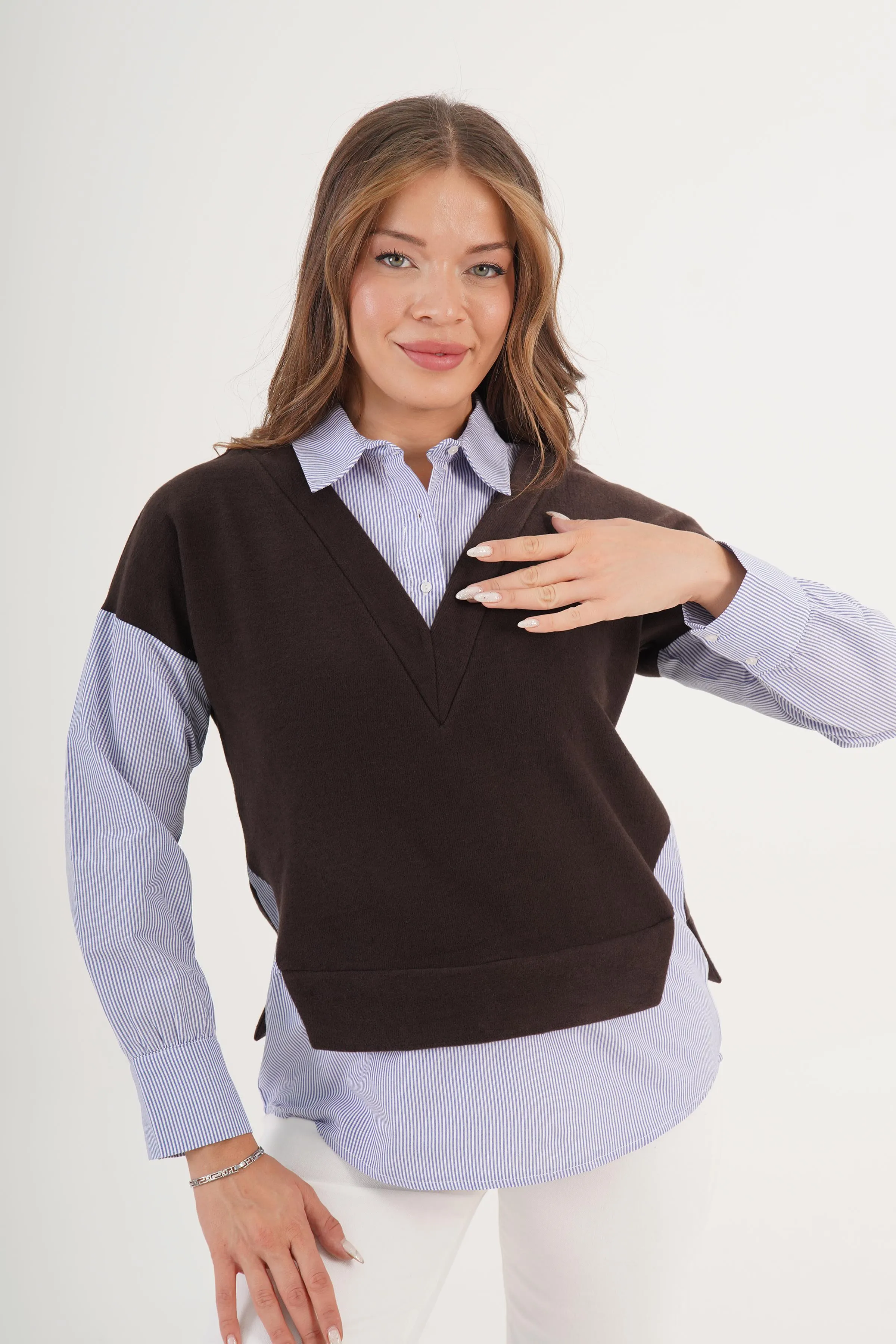 الموديل ترتدي مقاس ستاندرد – الطول 175 سم، الوزن 54 كغ، الصدر 88 سم، الخصر 65 سم، الورك 98 سم