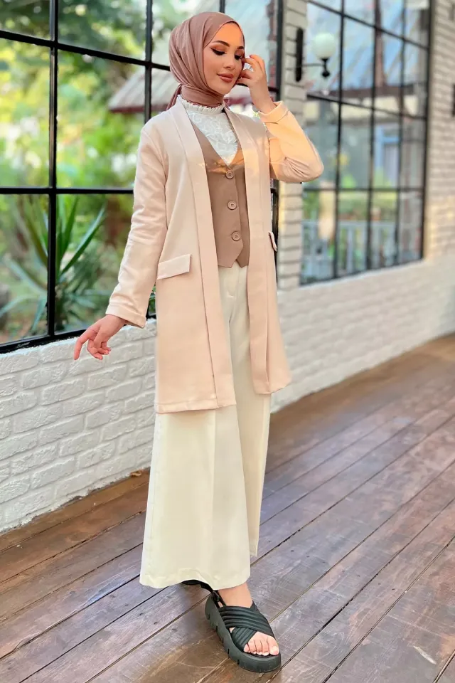 الموديل ترتدي مقاس ستاندرد – الطول 175 سم، الوزن 54 كغ، الصدر 89 سم، الخصر 67 سم، الورك 98 سم