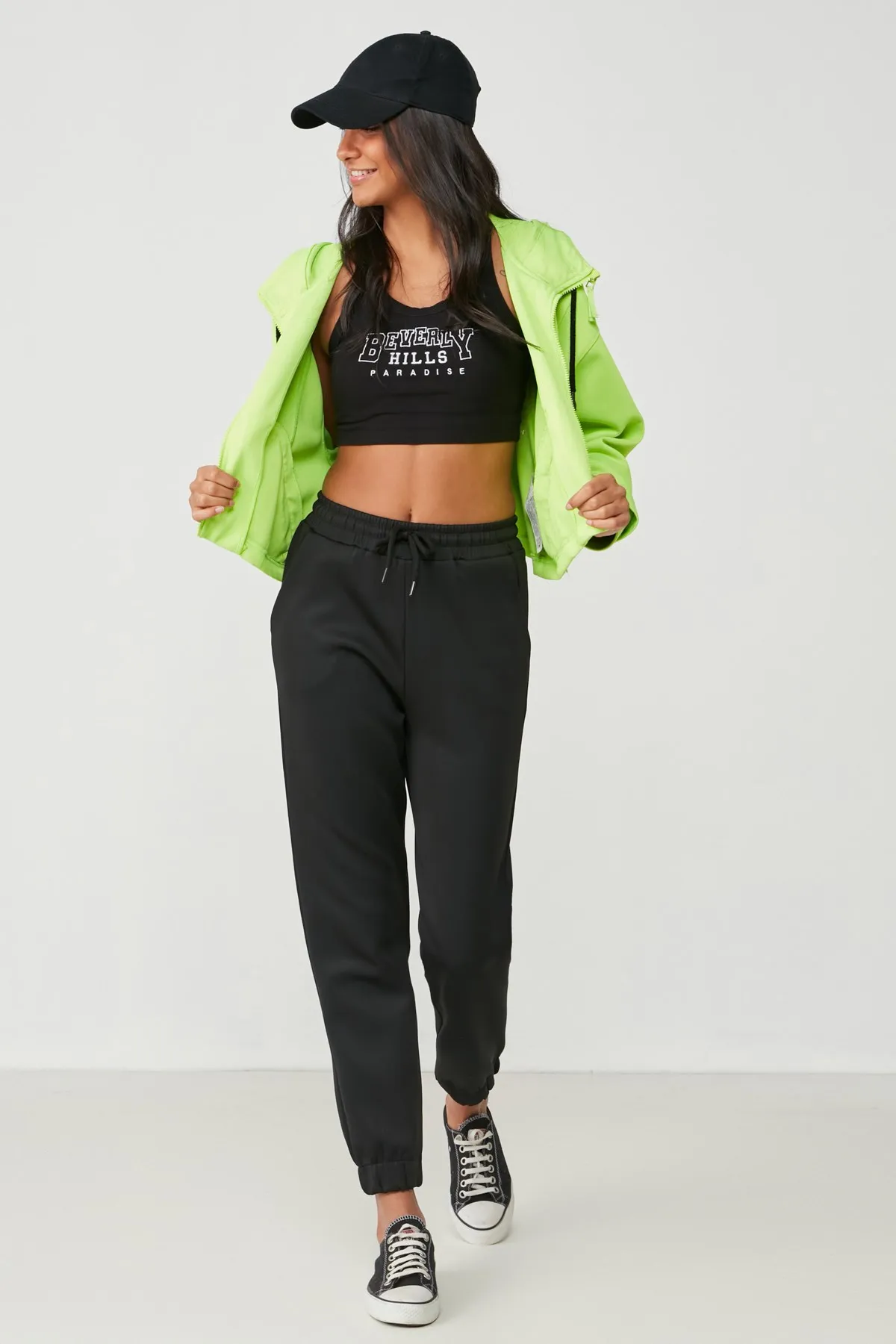 بنطلون رياضي نسائي واسع الساق بخصر مطاطي وتفاصيل دانتيل أنيقة على الخصر. مصنوع من قماش ناعم ومرن يوفر راحة وانسيابية طوال اليوم، مثالي للإطلالات الكاجوال والرياضية اليومية.