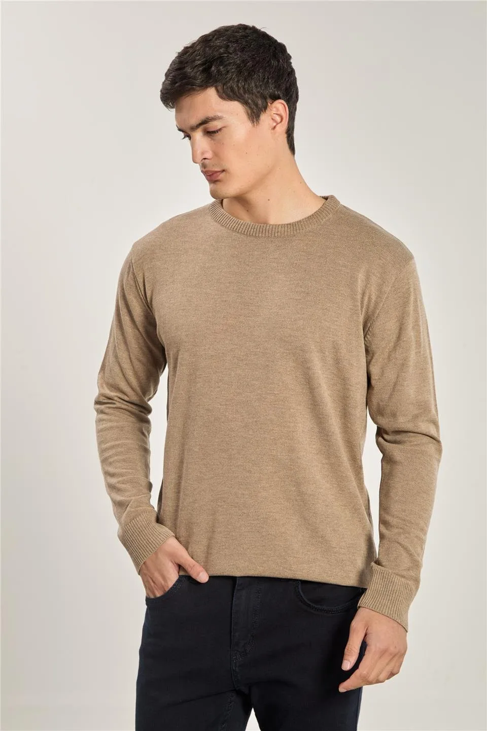 كنزة رجالية مضلعة بقصة مريحة وأكمام طويلة مع ياقة بولو، مصنوعة من مزيج 80% بولي أميد و15% فيسكوز و5% ليكرا، تمنح مرونة جيدة وثبات شكل ومظهر مرتب.