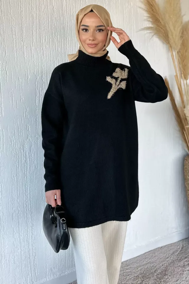 تونيك محبوك ناعم بياقة دائرية مع وشاح أنيق مدمج، يمنح إطلالة محتشمة وعصرية. يتميز بقماش خفيف ومريح يناسب الإطلالات اليومية بسهولة وأناقة.