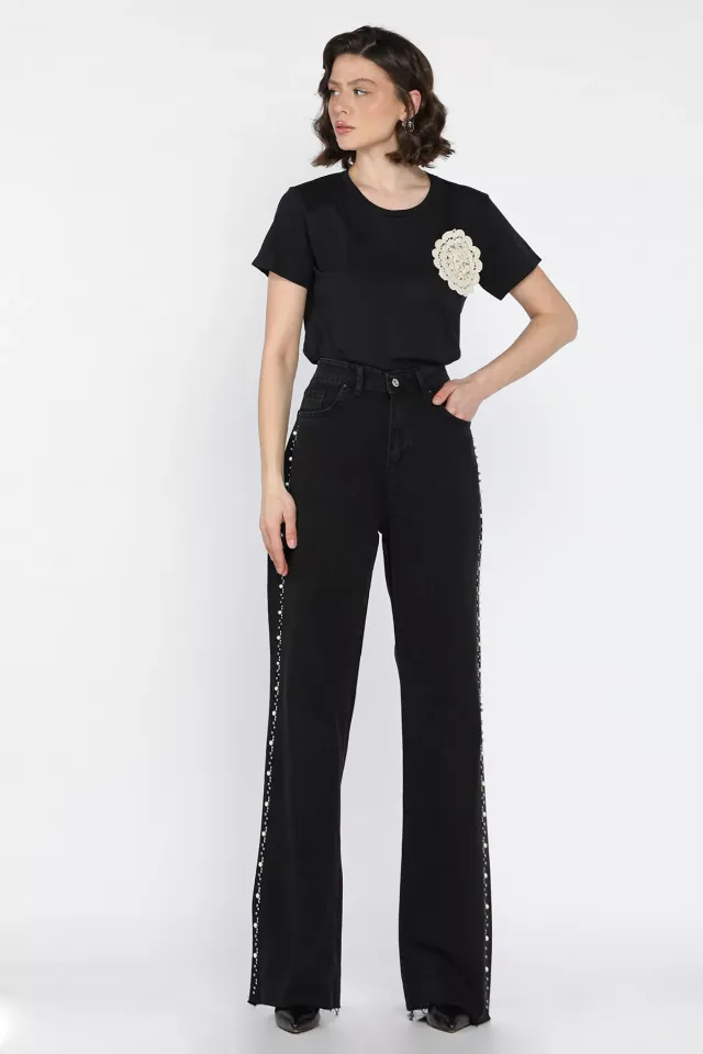 بنطال بالازو مريح بخصر عالي وطيات ناعمة وقصة واسعة لِلوك يومي شيك وعصري.