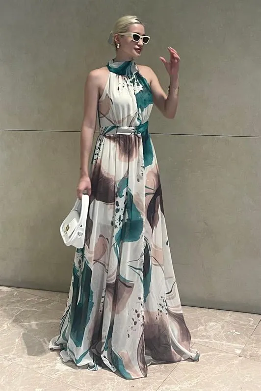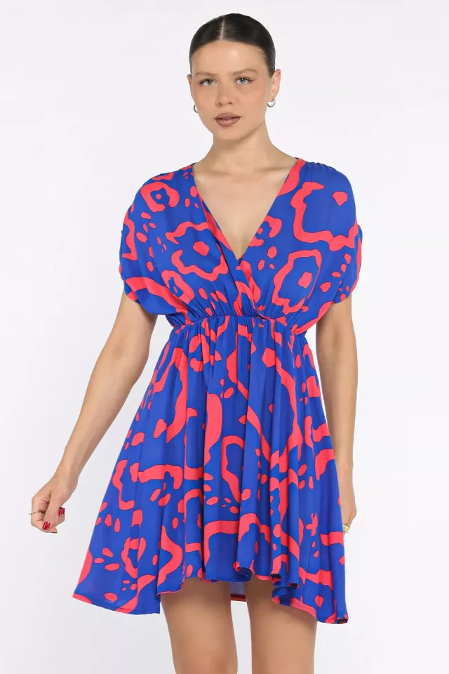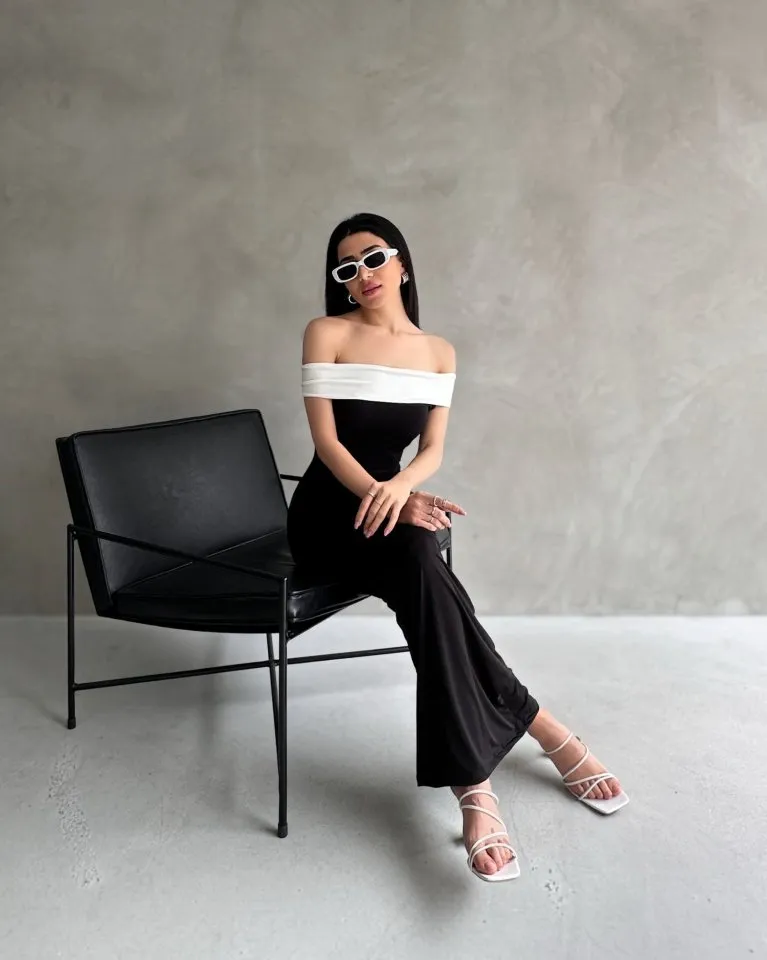 الموديل ترتدي مقاس 38 – الطول 176 سم، الصدر 90 سم، الخصر 63 سم، الورك 94 سم