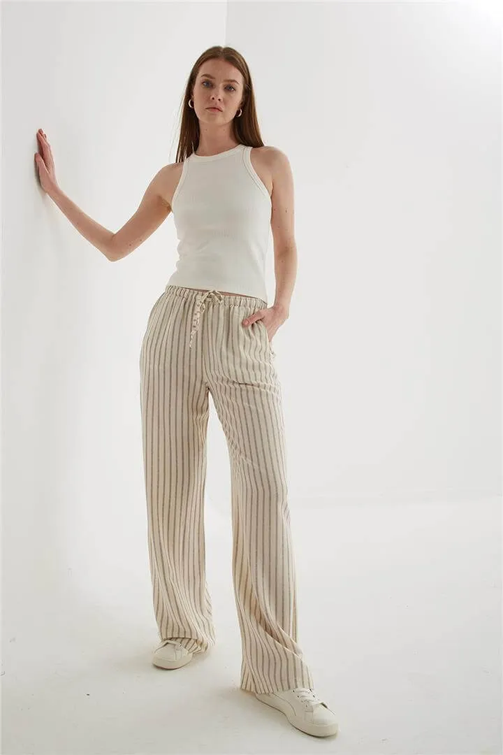 بنطلون بالازو بخصر عالي وطيات للنساء - Beyond Store