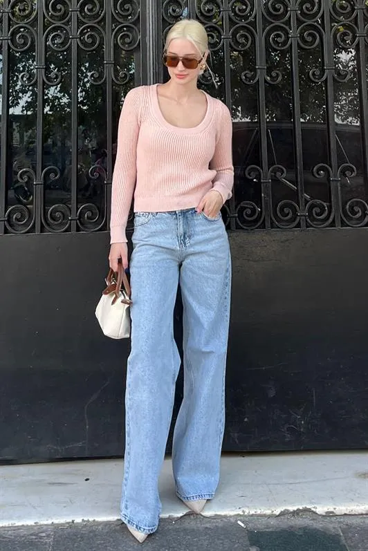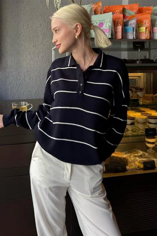 سويتر تريكو كيوت بنعومة مريحة وياقة V لإطلالات شتوية يومية دافئة.