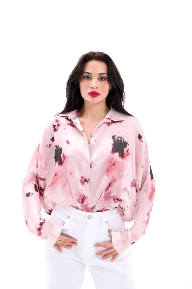 قميص أوفرسايز منقوش بقصة كتف منخفضة وأزرار أمامية لِلوك يومي مريح وعصري.