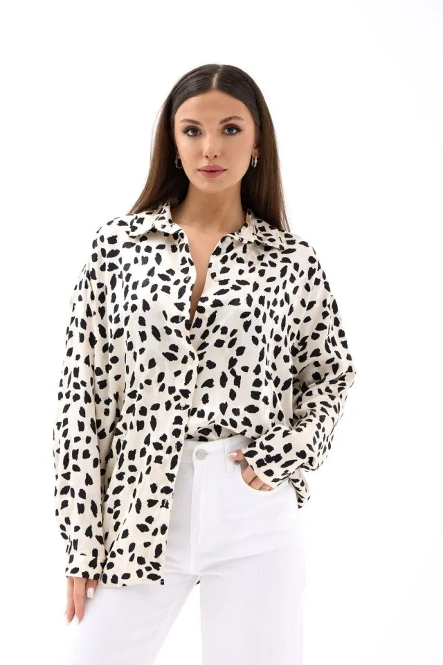 قميص أوفرسايز منقوش بقصة كتف منخفضة وأزرار أمامية لِلوك يومي مريح وعصري.