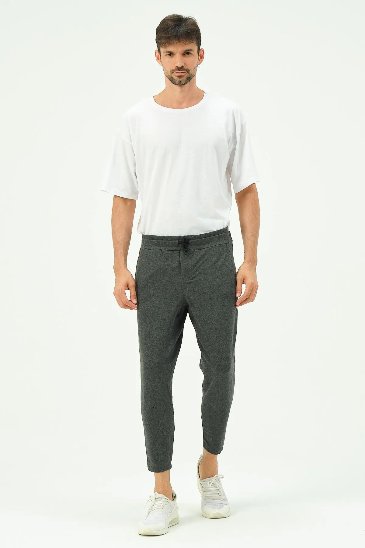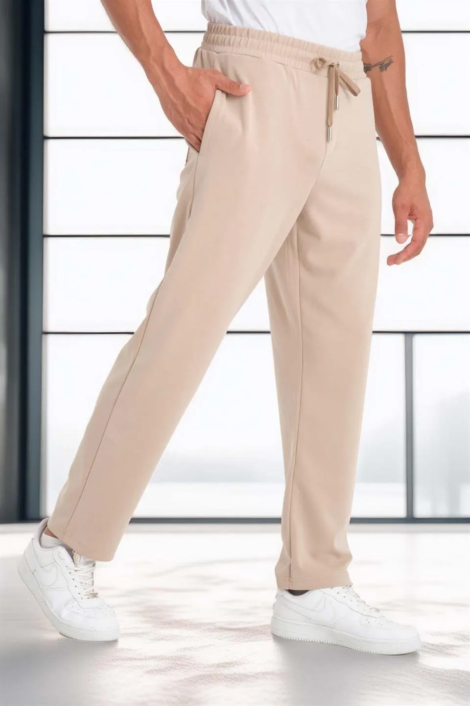 بنطال رياضي رجالي ناعم الملمس، بخصر مطاطي وأطراف مطوية، مصنوع من 70% قطن و30% بوليستر. مصمم للارتداء اليومي ببطانة داخلية ناعمة وقصة متناسقة.