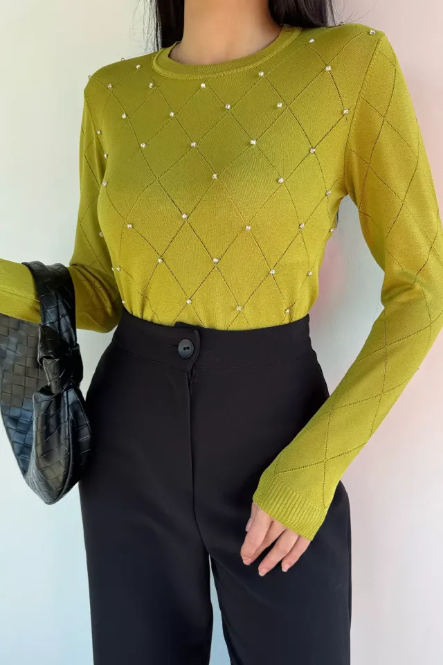 بلوزة نسائية بأكمام طويلة و ياقة على شكل حرف V