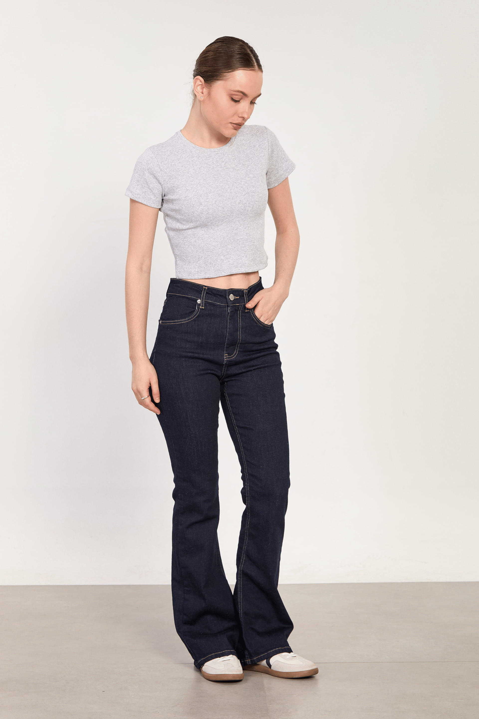 جينز بخصر مرتفع وقصة موم مع رباط خصر