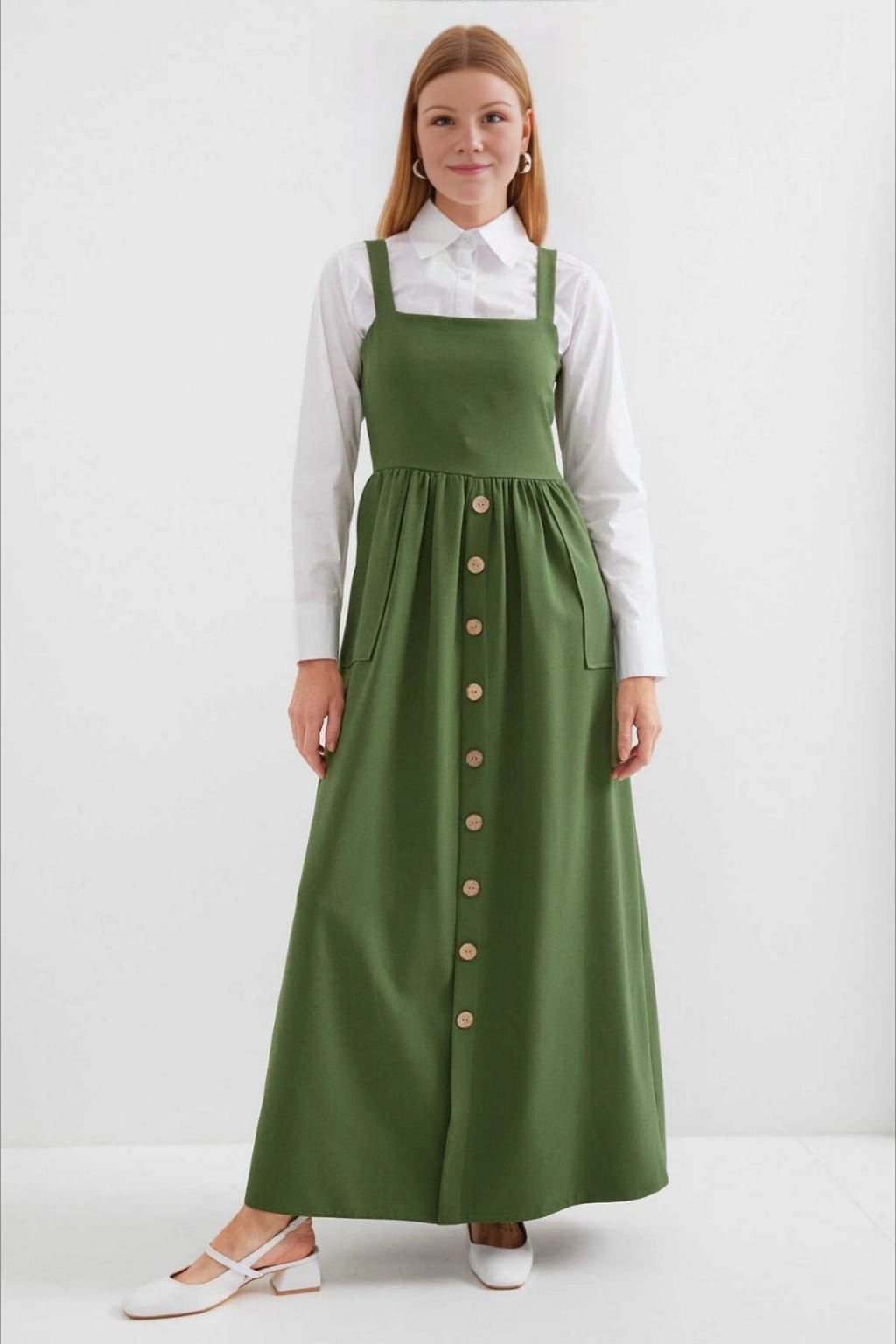 فستان فيسكوز طويل بياقة V مع شق جانبي لستايل يومي مريح وكيوت بإطلالة عصرية.