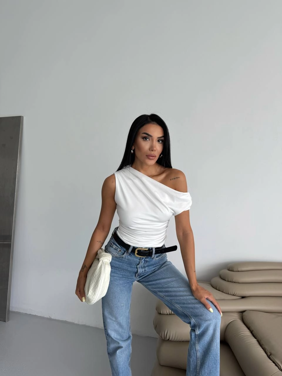 بلوزة نسائية سادة بأكمام طويلة وياقة دائرية بتصميم بسيط وأنيق، مصنوعة من قماش مريح يضمن إطلالة منظمة وسهلة التنسيق، مما يجعلها خيارًا مثاليًا للارتداء اليومي.