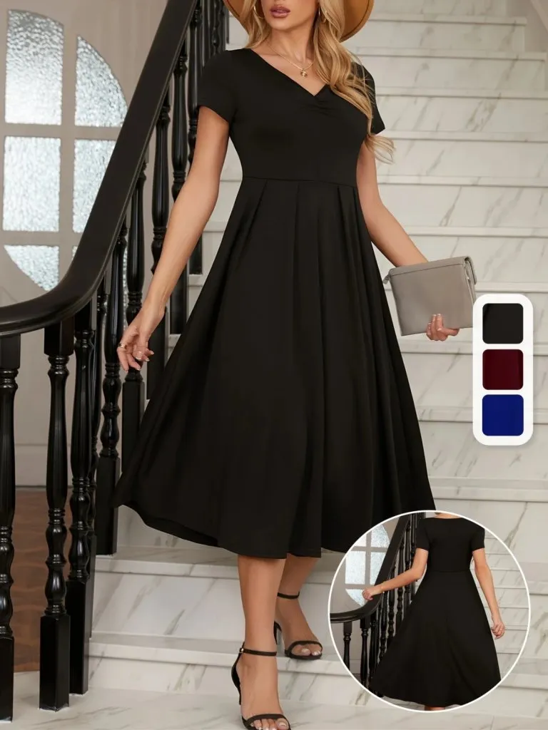 فستان ميدي مودال بياقة V مع تفصيل مخطط