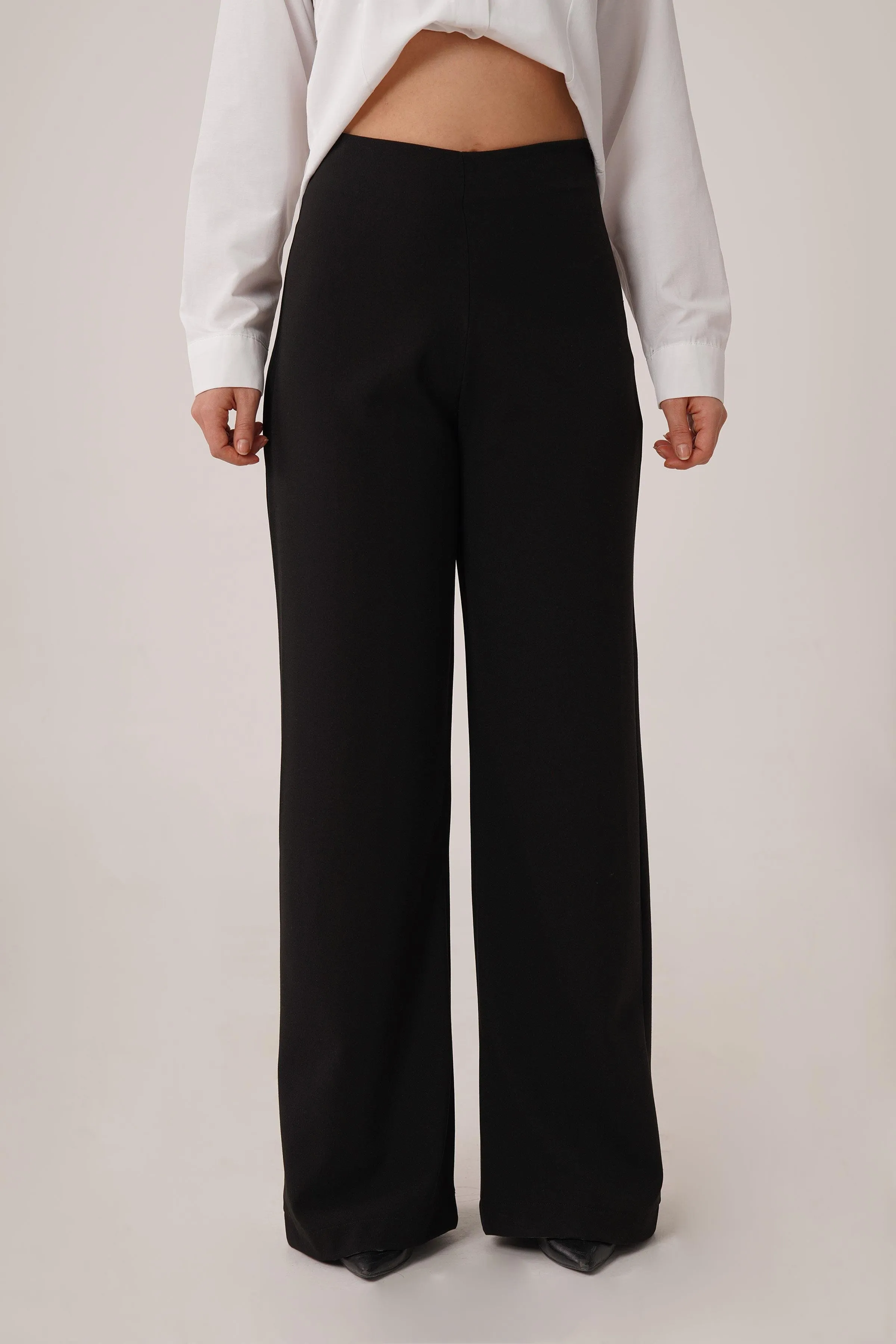 بنطال نسائي بخصر مرتفع وقصة واسعة بنقشة جلد فهد وقماش كريب لستايل جريء وعصري يومي.
