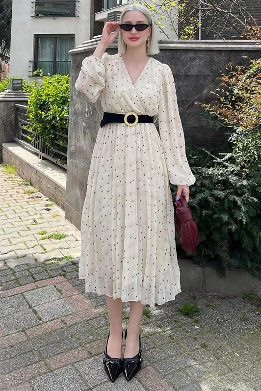 فستان نسائي بفتحة أمامية وياقة عالية مع شق جانبي - Beyond Store