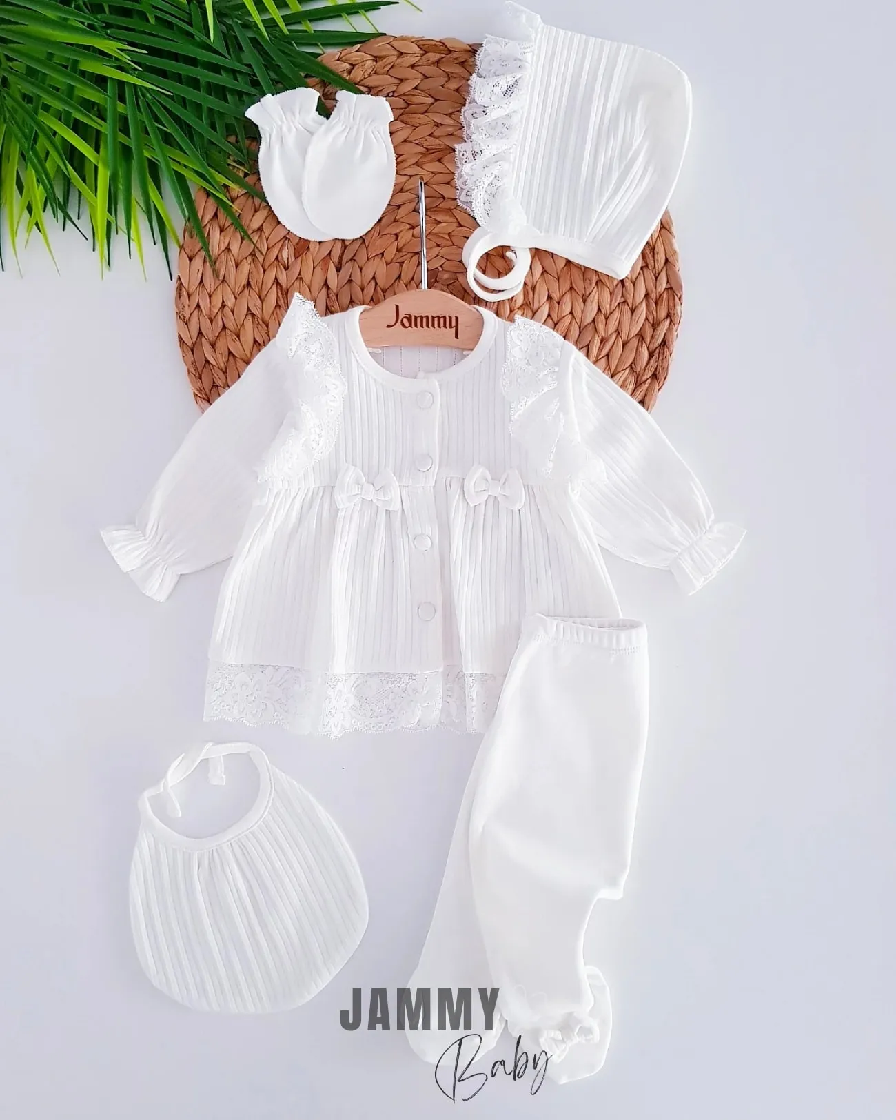 طقم بنات رضع مكوّن من بنطلون مطرز وفيست منفوخ، مصنوع من قماش ناعم ودافئ للحفاظ على راحة الطفل، مناسب لفصل الخريف والشتاء.