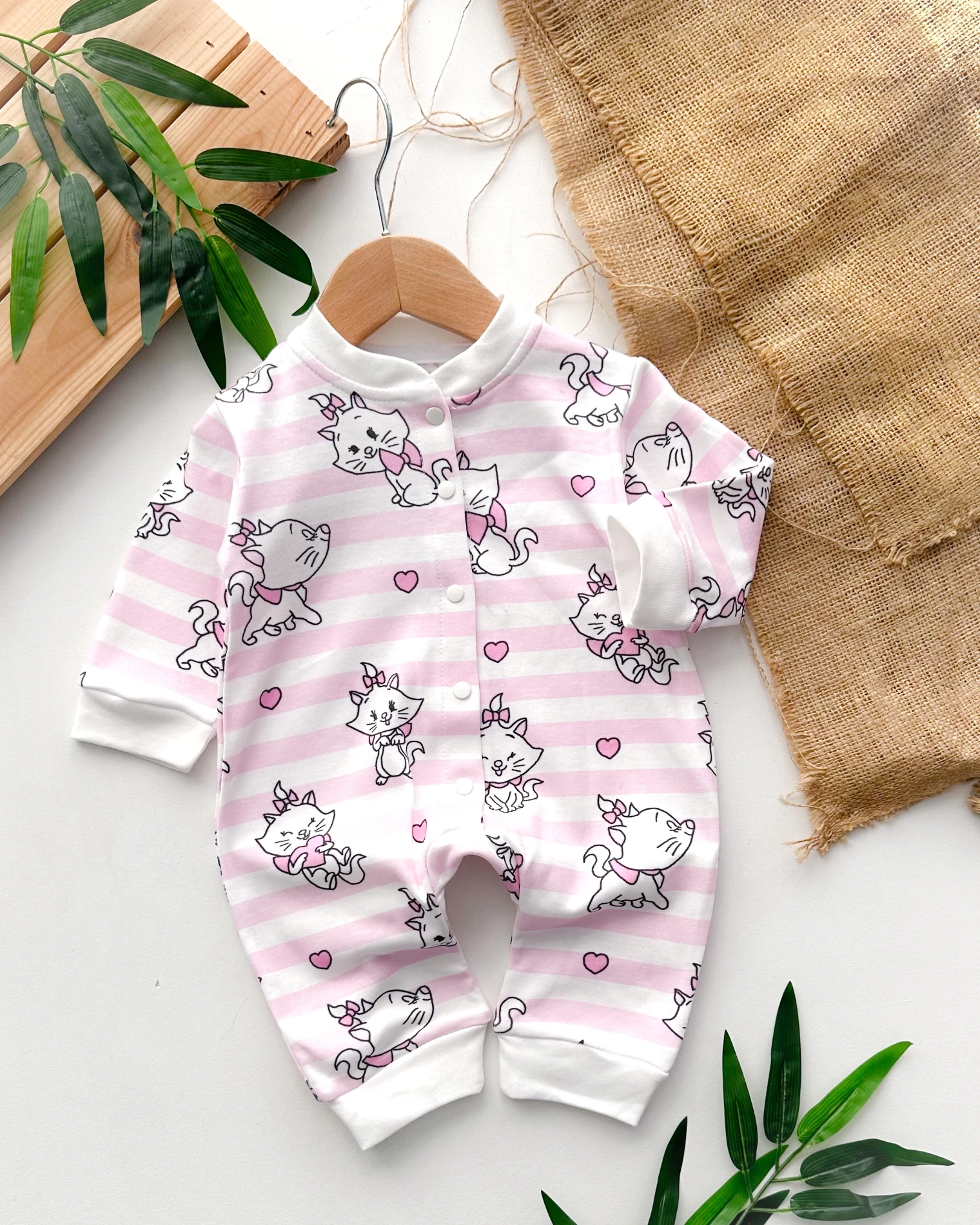 .طقم أفرول للبنات الرضع بأكمام طويلة مع قبعة مطابقة وتطريزات جميلة، مصنوع من قماش ناعم ومريح مناسب لجميع فصول السنة