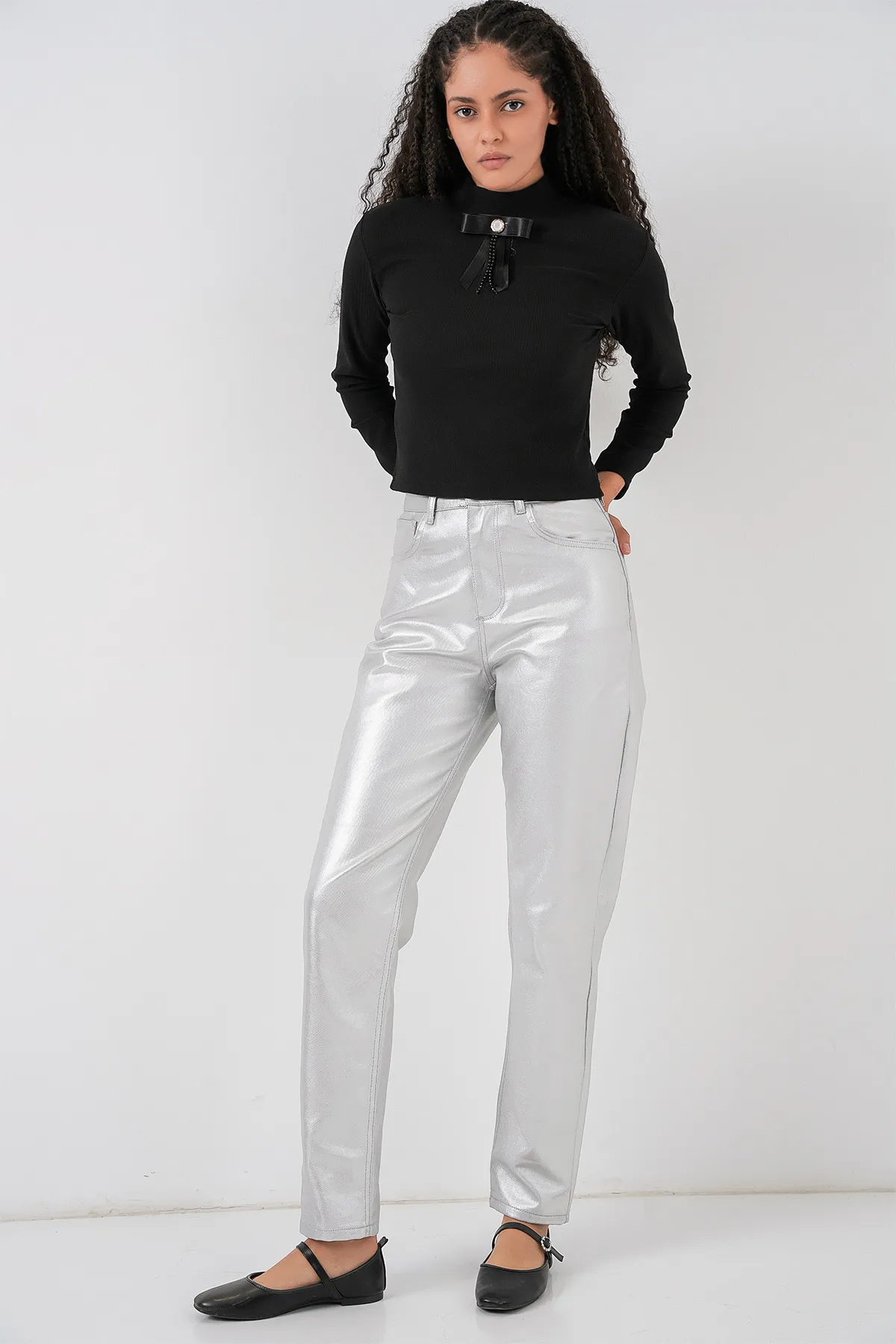 بنطال واسع بطيات وخصر عالٍ للنساء