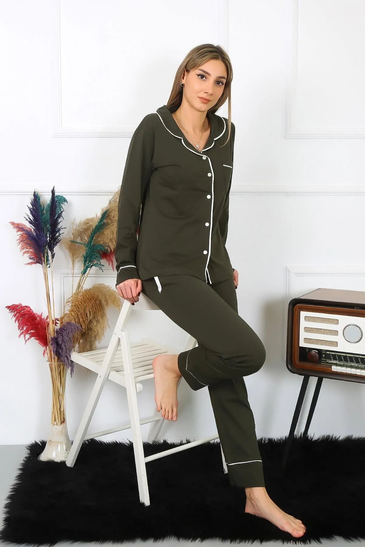 بنطال بيجاما نسائي مريح مخصص للاستخدام اليومي وملابس النوم. يتميز بقصة عادية وخصر مطاطي يوفر راحة وسهولة في الحركة. تصميم منقوش بلمسة كلاسيكية مناسب للاستخدام الموسمي.