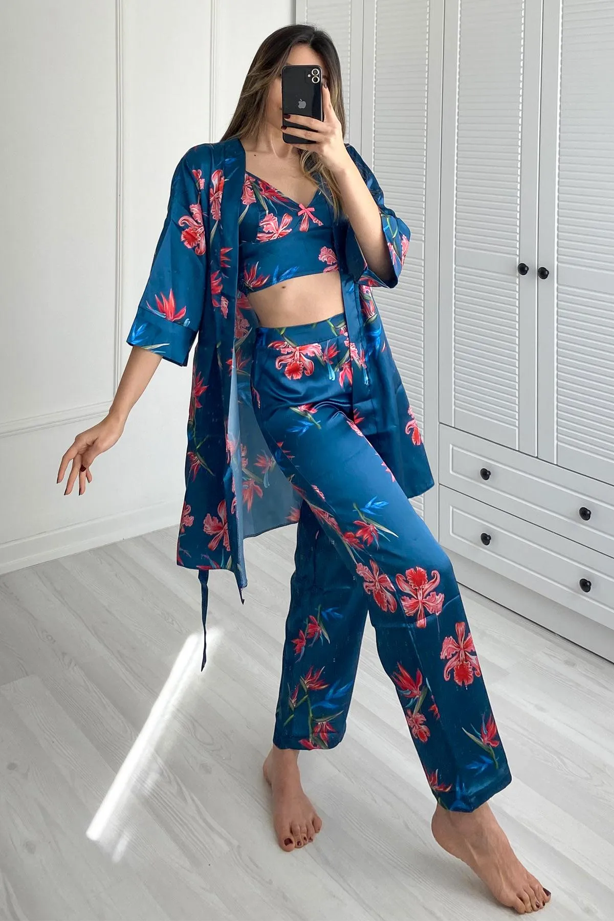 طقم البيجاما هذا بأعلى بدون أكمام مع ياقة على شكل U وتفاصيل دانتيل ناعمة يقدم لكِ الراحة والأناقة. مع حزام خصر مطاطي وقَصّة مريحة، يعد مثاليًا للاسترخاء أو النوم الهادئ. إضافة بسيطة ولكنها أنيقة لمجموعة ملابس النوم الصيفية الخاصة بكِ.