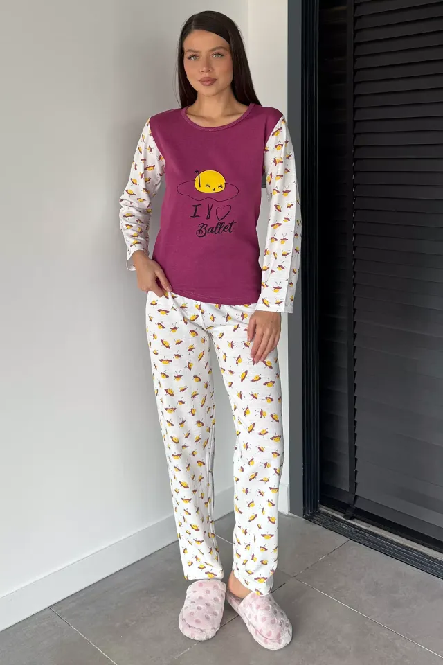 طقم بيجاما نسائي بأكمام قصيرة وياقة دائرية مع طباعة وجيوب - Beyond Store