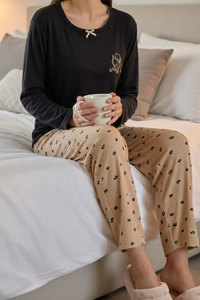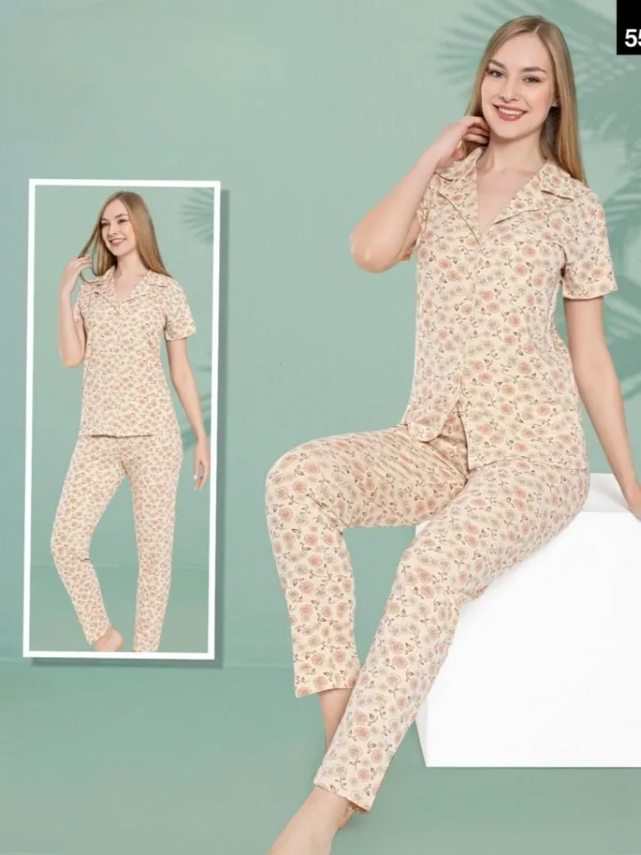 طقم بيجاما نسائي بأكمام قصيرة وخصر مطاطي - Beyond Store