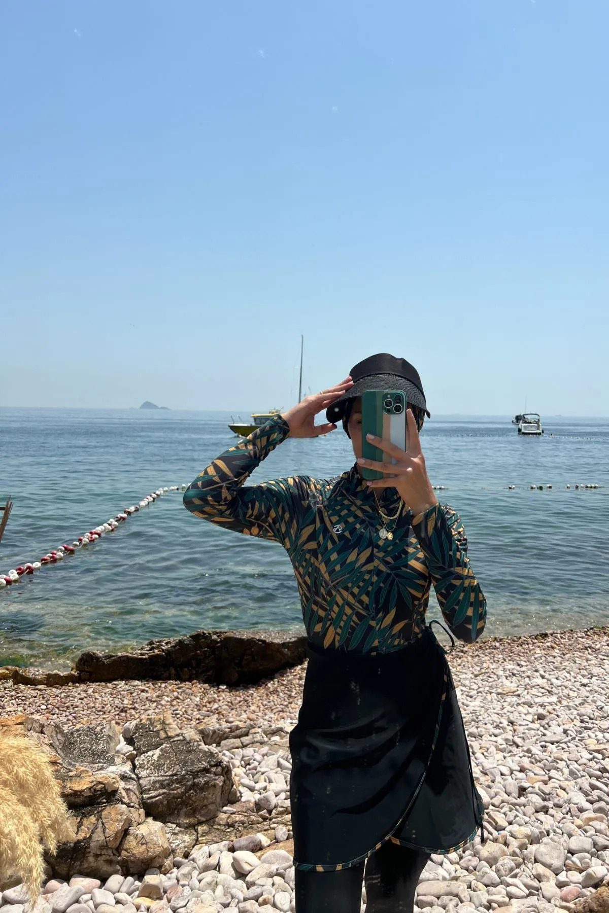 ملابس سباحة نسائية سادة بأكمام قصيرة مصنوعة من قماش ناعم ومرن يوفر راحة عالية وحرية حركة، بتصميم محتشم عملي مناسب للسباحة والاستمتاع بالأنشطة الشاطئية وحمام السباحة.