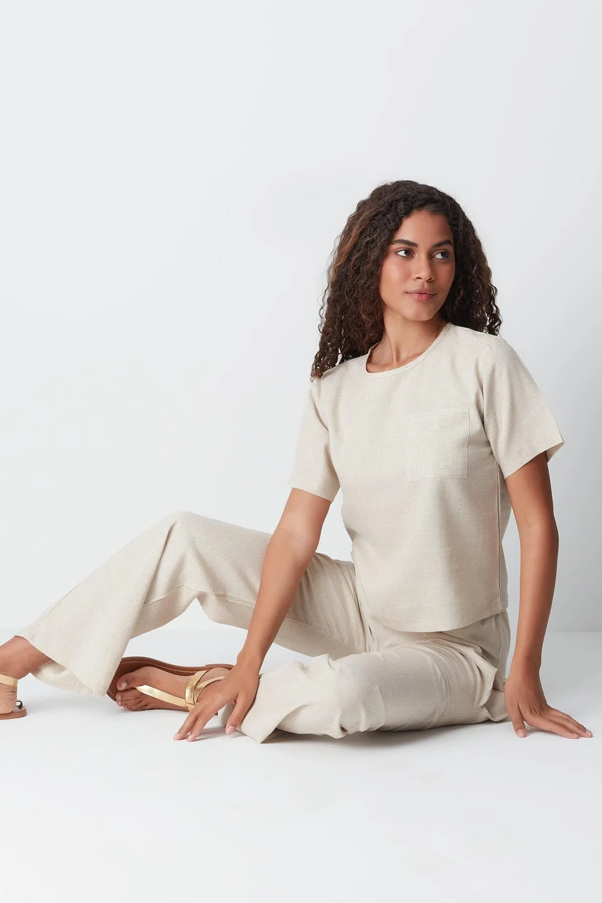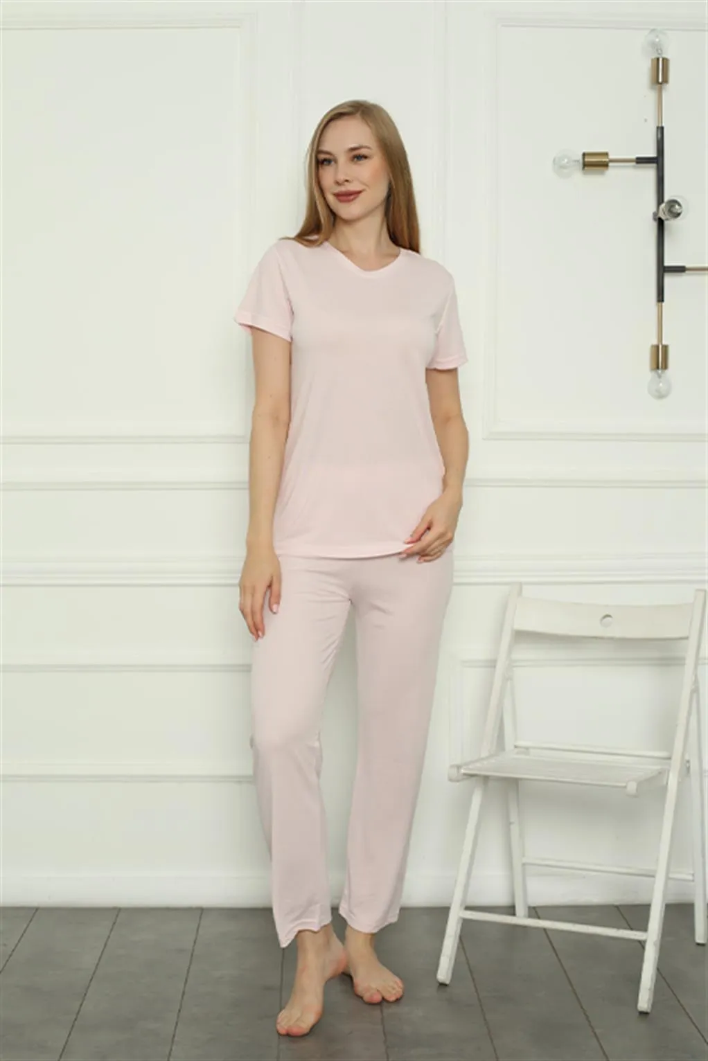 طقم البيجاما بلس سايز هذا يأتي بقَصّة مريحة بأكمام قصيرة وياقة دائرية لراحة يومية سهلة. بفضل الخصر المطاطي، يصبح مثاليًا لليالي الصيفية الدافئة أو للاسترخاء في المنزل. تصميمه البسيط والعصري يجعله قطعة أساسية لملابس نوم عملية وسهلة الارتداء.