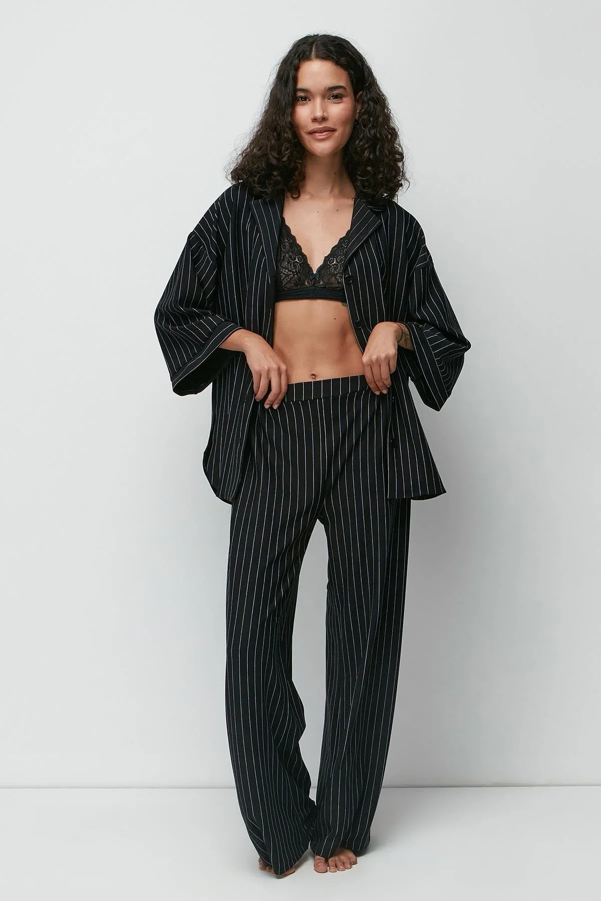 طقم البيجاما بأكمام قصيرة مع ياقة دائرية وحزام خصر مطاطي لملاءمة مريحة وسهلة. مثالي للاسترخاء أو الاستراحة، يقدم إطلالة بسيطة وأنيقة للاستخدام اليومي، ويُعد خيارًا مثاليًا لأيام وليالي الصيف الدافئة.