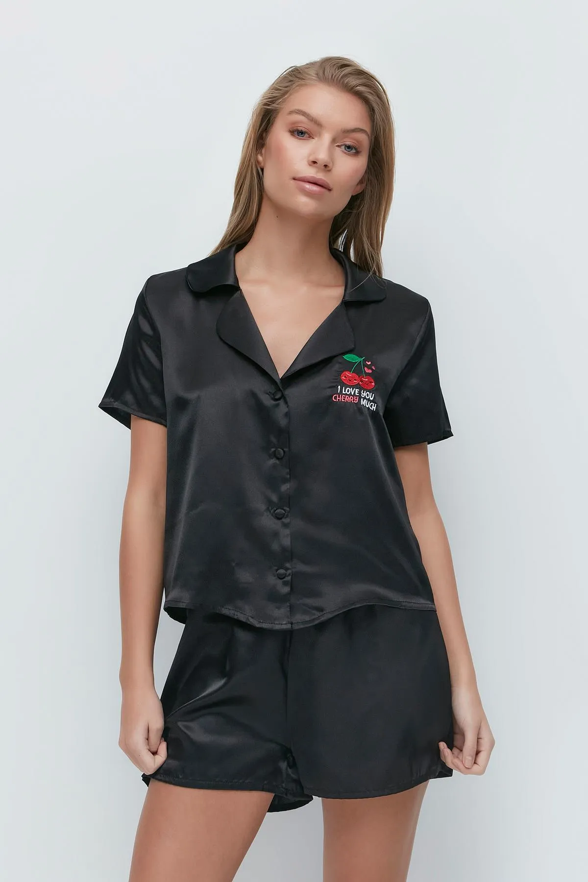 طقم بيجاما نسائي بأكمام قصيرة وخصر مطاطي - Beyond Store