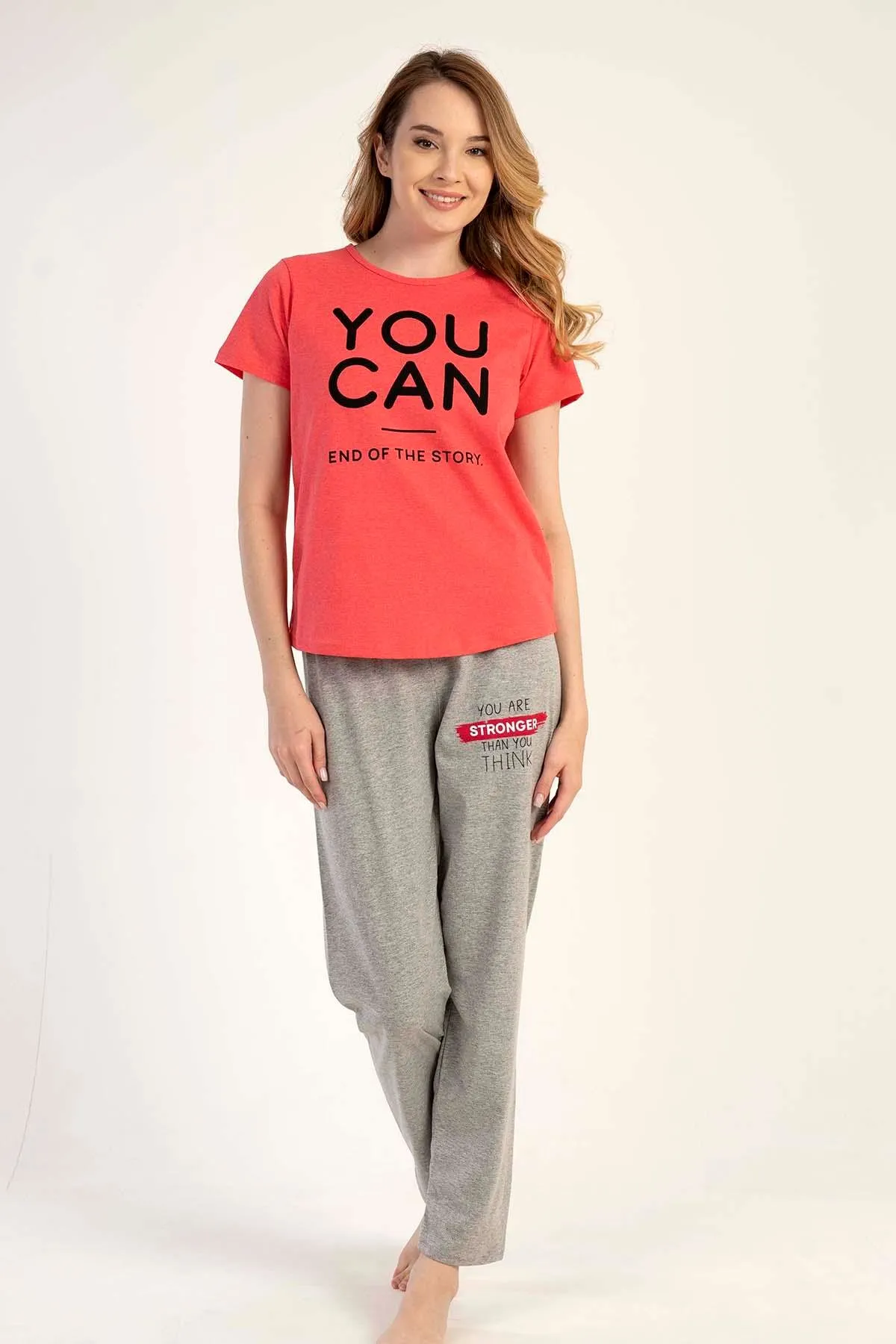 طقم بيجاما نسائي بأعلى بدون أكمام وياقة على شكل U مع تفاصيل رباط وستايل مخطط - Beyond Store