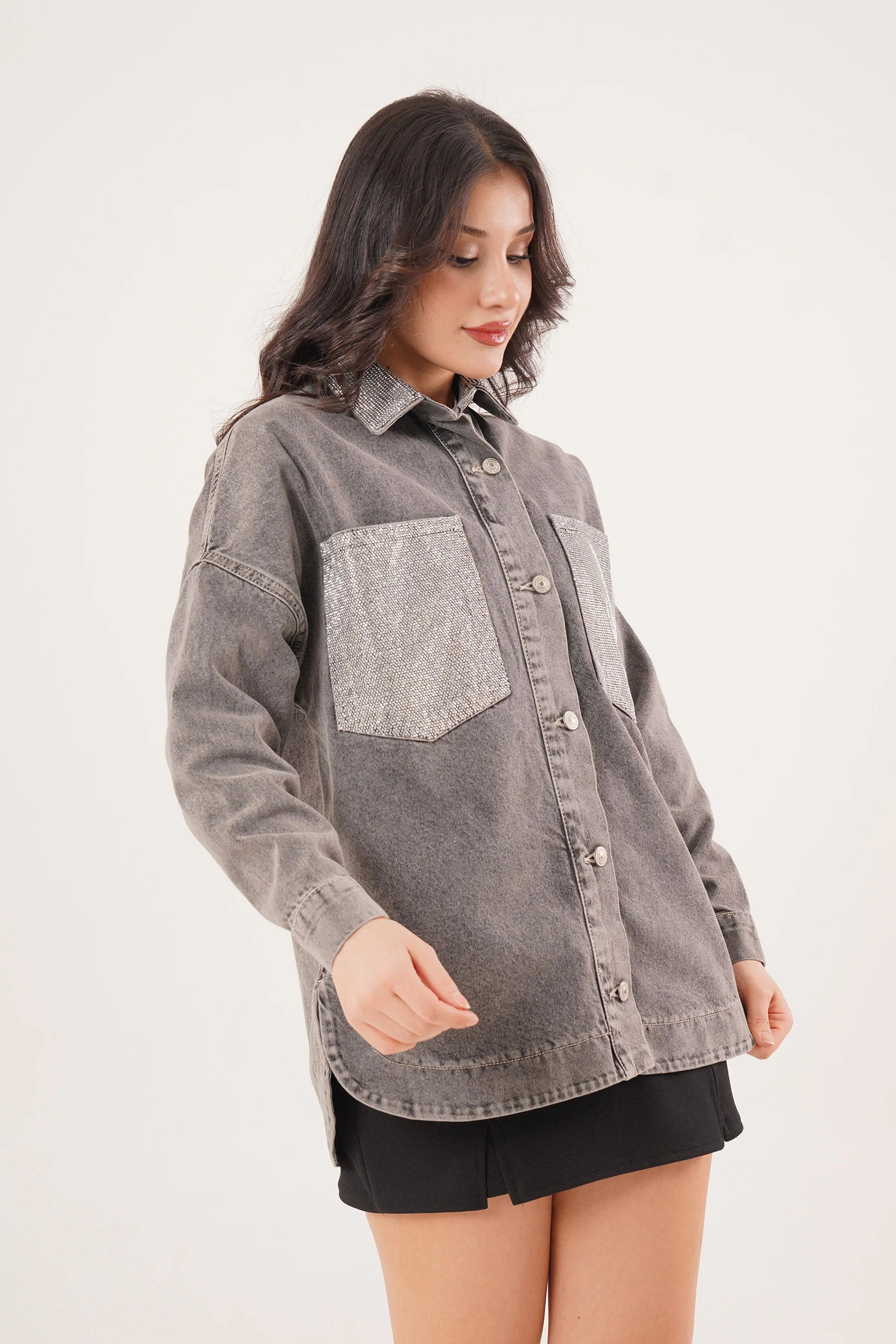 جاكيت بقصة فضفاضة مع سحاب وقصة مريحة