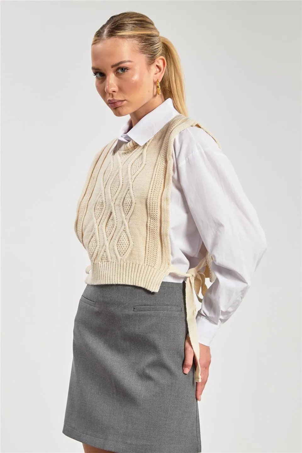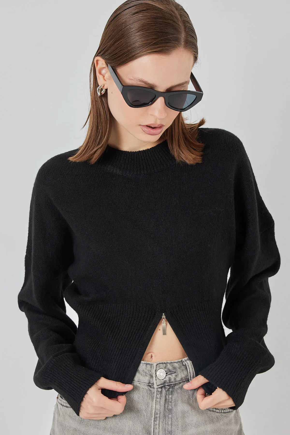 توب تريكو مريح بياقة نصف عالية وأكمام قصيرة مع قصة ضيقة يعطي لوك عصري كيوت ومناسب للاستخدام اليومي.