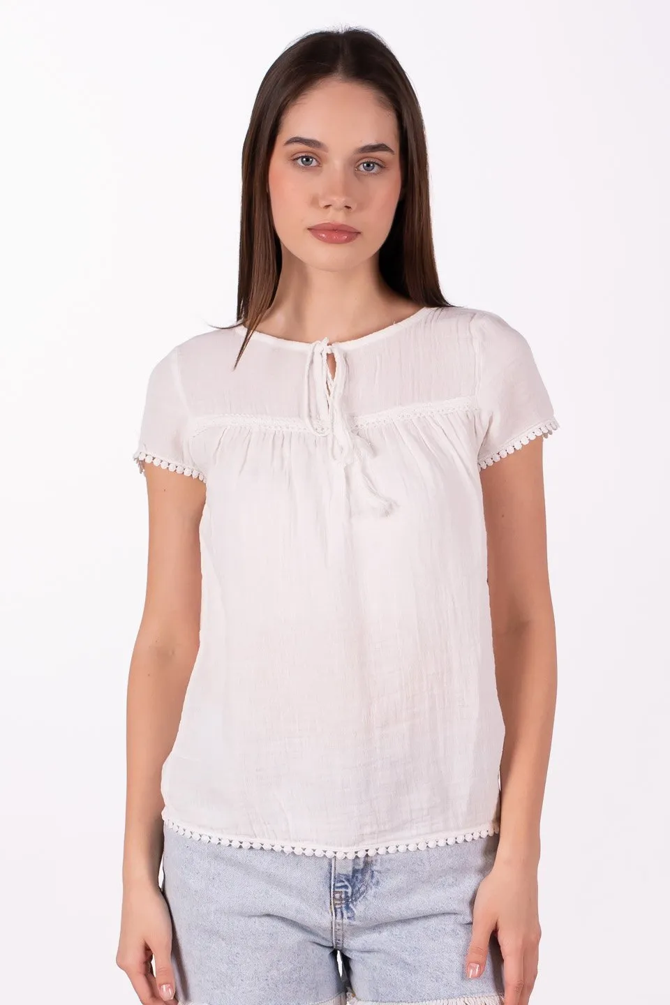 بلوزة نسائية بدون أكمام بتصميم مريح وياقة عالية تمنح مظهرًا عصريًا أنيقًا. بسيطة وخفيفة، مناسبة للارتداء اليومي وسهلة التنسيق مع الإطلالات الكاجوال أو الأنيقة.