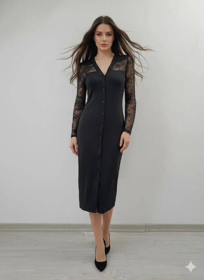 فستان ميدي مصنوع من قماش الساتان الناعم، يتميز بأكمام خفاش أنيقة وحزام سلسلة يبرز الخصر بشكل جذاب. مثالي للمناسبات والسهرات، يمنح إطلالة راقية ولمسة أنثوية مميزة.