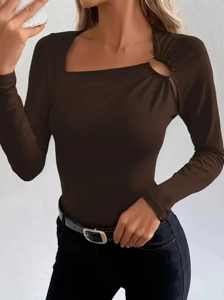 بلوزة مزدوجة الصدر بأكمام منفوخة ولمعة ترتر وخصر مرن للنساء