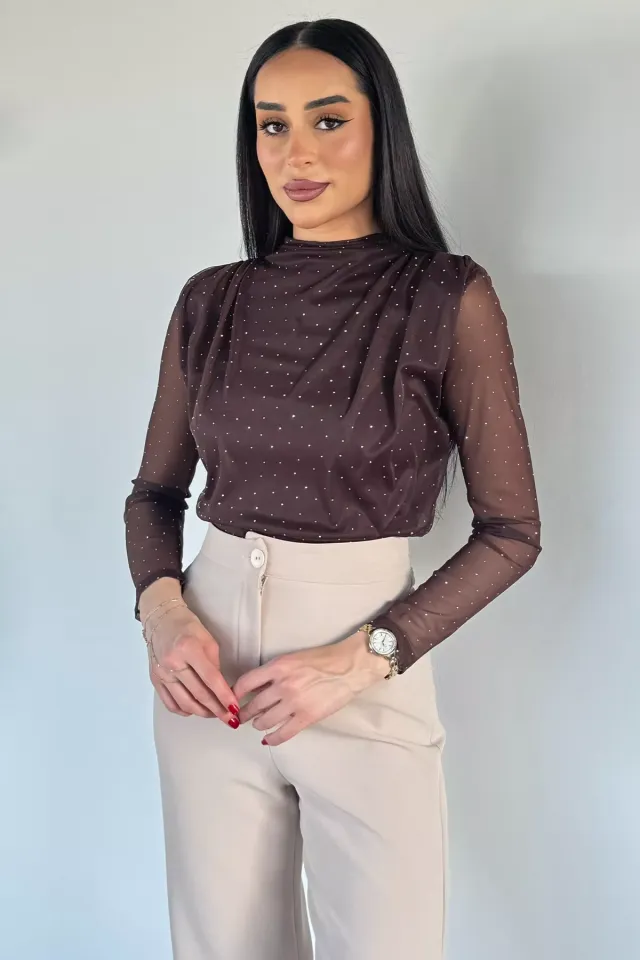 بلوزة ساتان بأكمام بالون بنقشة خطوط حمار وحشي